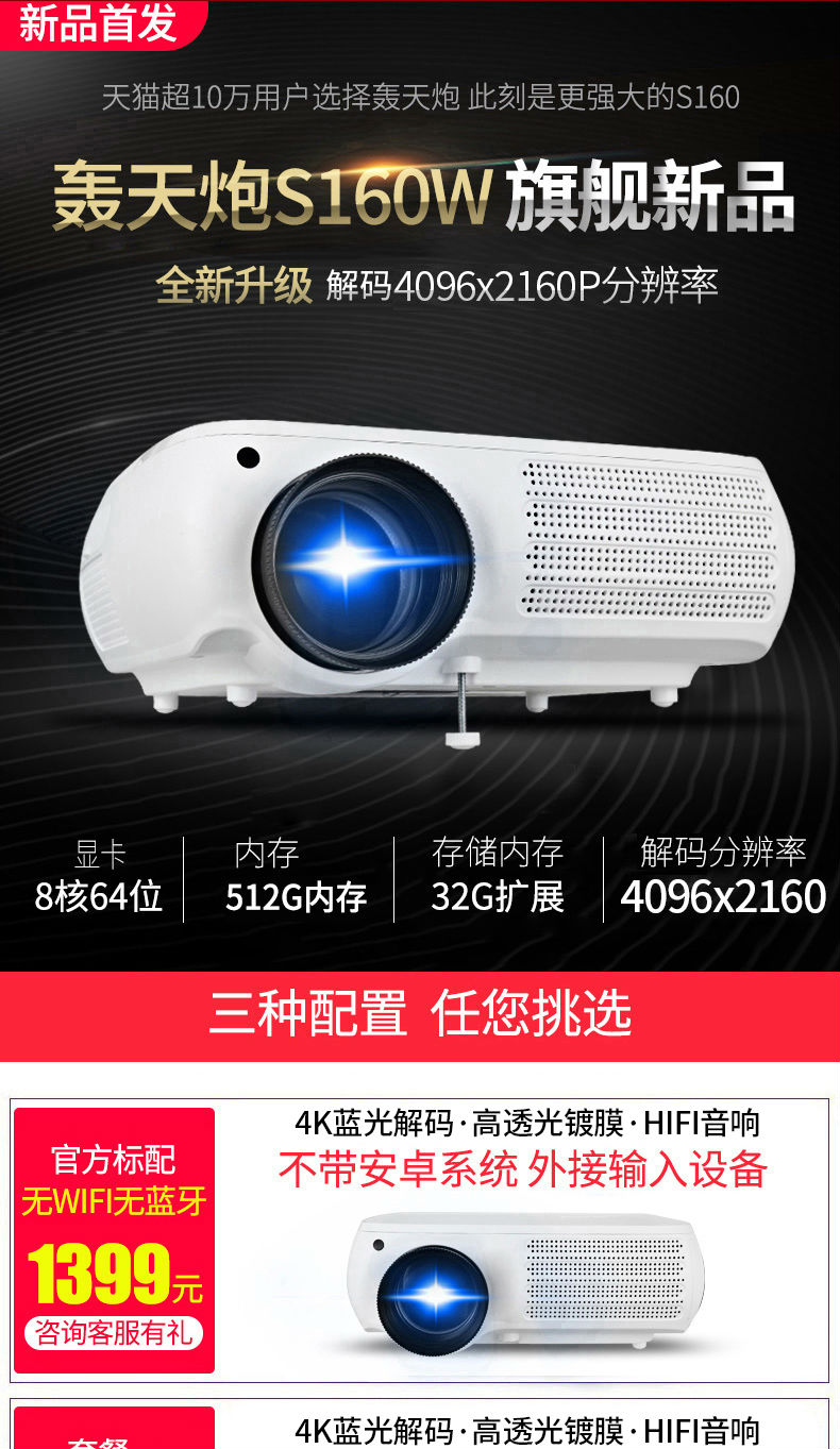 首頁 > 全部分類 > 投影機 > 轟天炮2021新款s160w家用投影儀wifi無線1080p手機投墻高清智能投影機3D家庭影院4K教學商用辦公投影儀