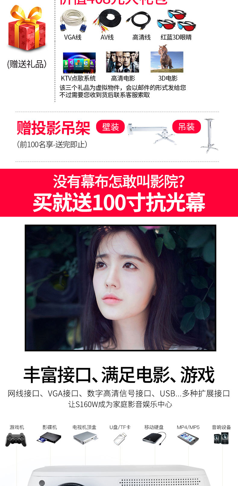 轟天炮2021新款s160w家用投影儀wifi無線1080p手機投墻高清智能投影機3D家庭影院4K教學商用辦公投影儀