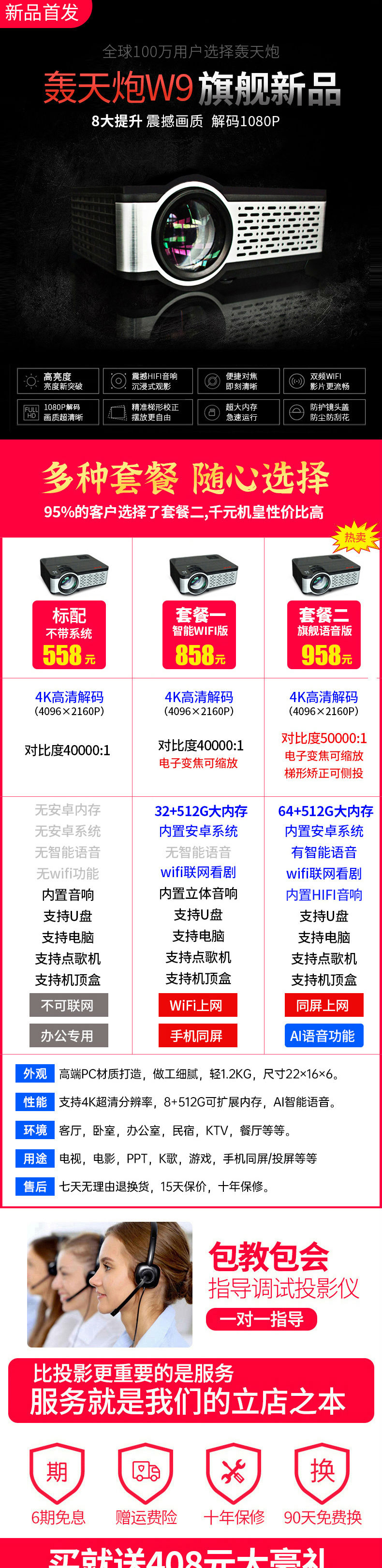 首頁 > 全部分類 > 投影機(jī) > 轟天炮w9投影儀家用小型便攜投影機(jī)高清1080p家用wifi無線家庭影院 4k投影儀手機(jī)墻投3d電視投影手機(jī)一體機(jī)