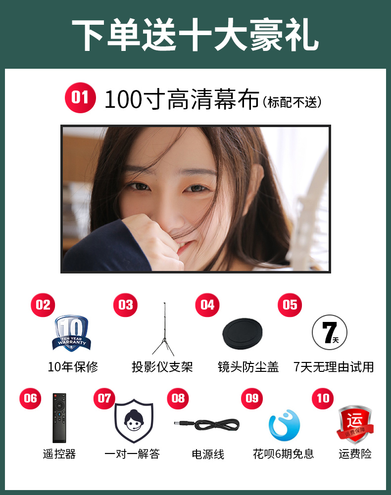 顏色分類: 標配版(無WiFi 無贈品) 套餐一(無WiFi 高亮版) 套餐二(有WiFi 內(nèi)置系統(tǒng)) 套餐三(語音遙控 四角側投)