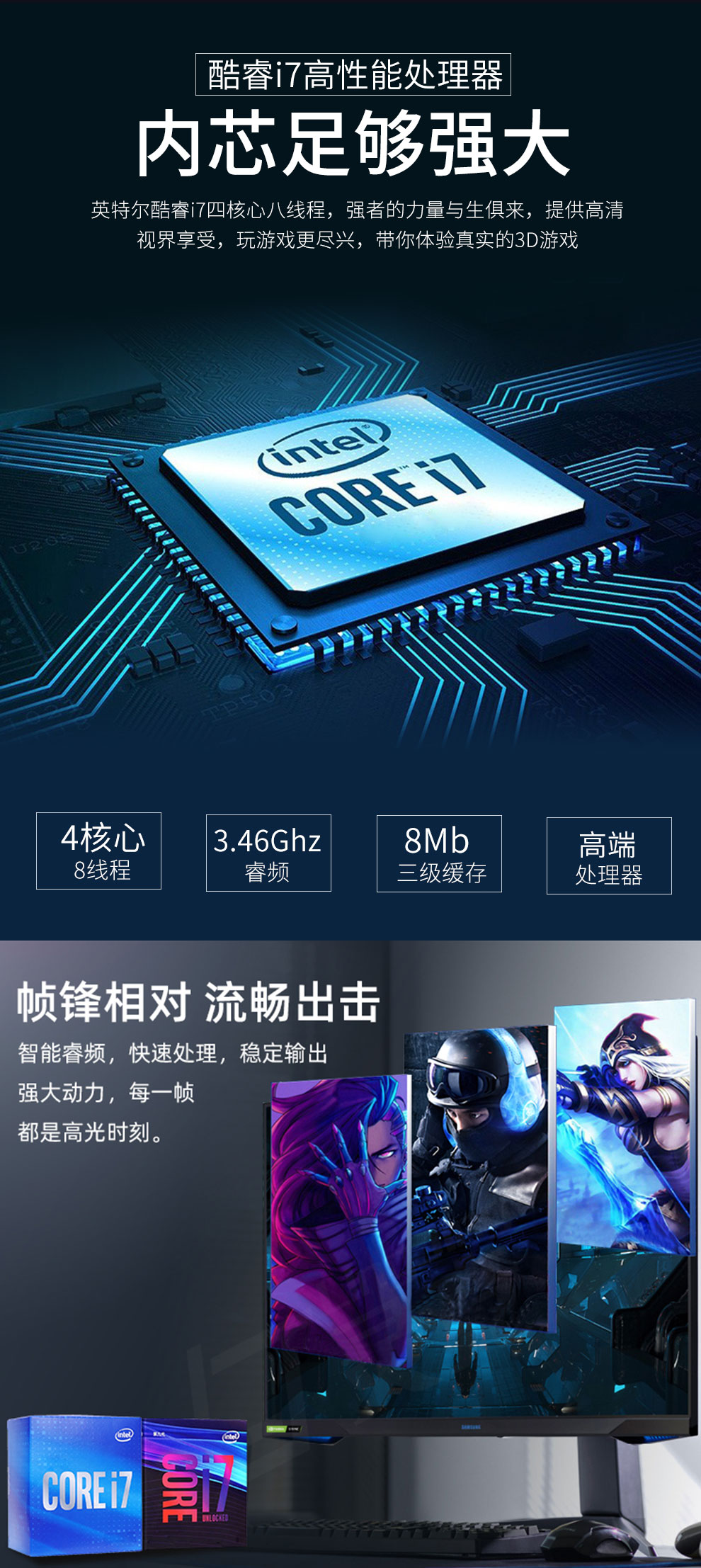 商品名稱:英特爾酷睿i5/i7/獨顯/16G家用辦公電競游戲吃雞設計師炒股組裝臺式電腦主機整機全套 主機+19英寸顯示器 配置一:酷睿i5/8G/628G組合硬盤