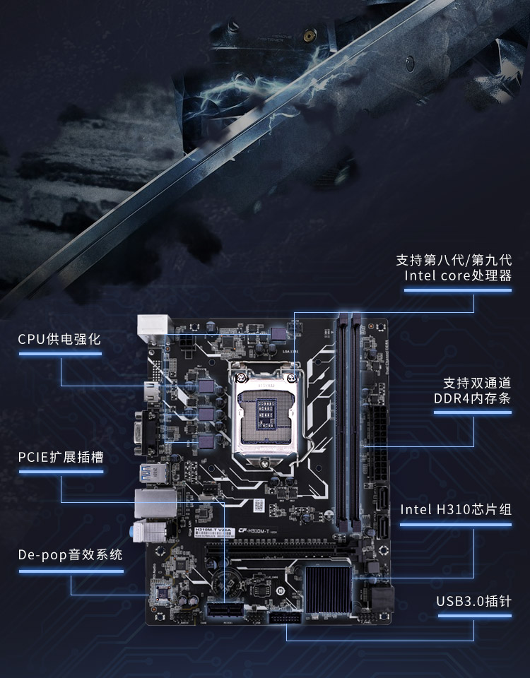 七彩虹(Colorful)H310M-T V20A 游戲主板 支持9100F/9400F/G5400 (Intel H310/LGA 1151)