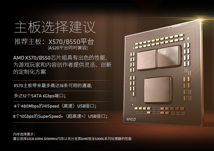 搭配主板(AMD):B550,A520,X570,B450