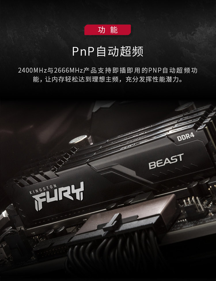 金士頓 (Kingston) FURY 8GB DDR4 2666 臺式機內(nèi)存條 Beast野獸系列 駭客神條