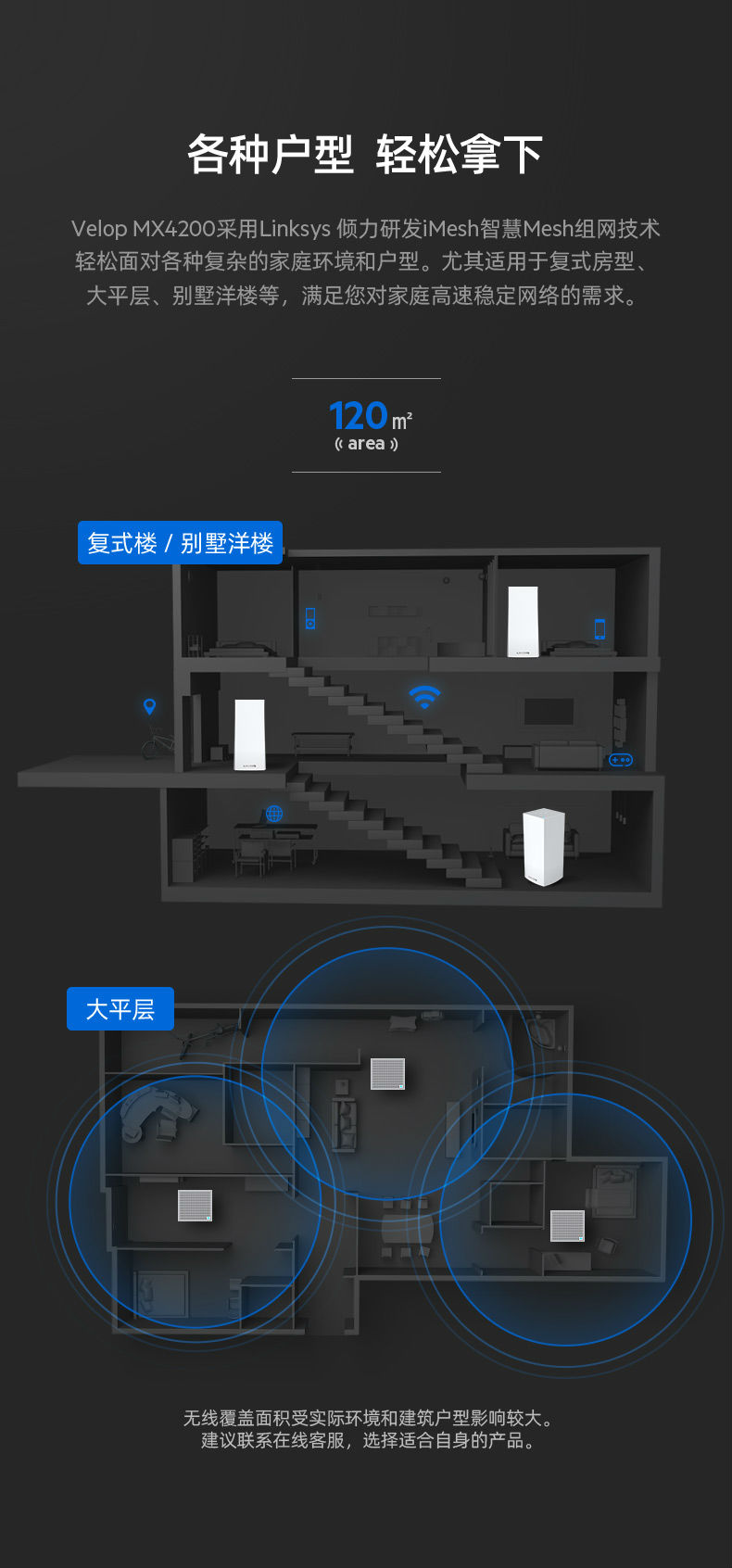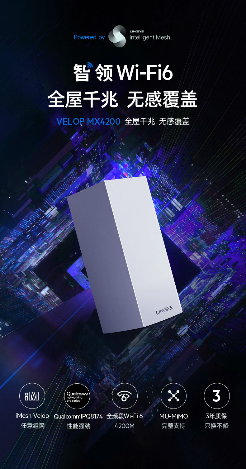 領勢(LINKSYS)全屋WIFI6路由器 VELOP MX4200 Mesh路由 三頻WIFI6分布式 AX6全千兆 企業家用路由器